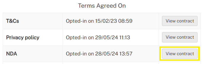 - Follow our user guide article on how to add your NDA in the same way you would add any typical terms and conditions. See:Terms, privacy statements, opt-ins and consent